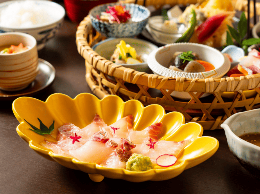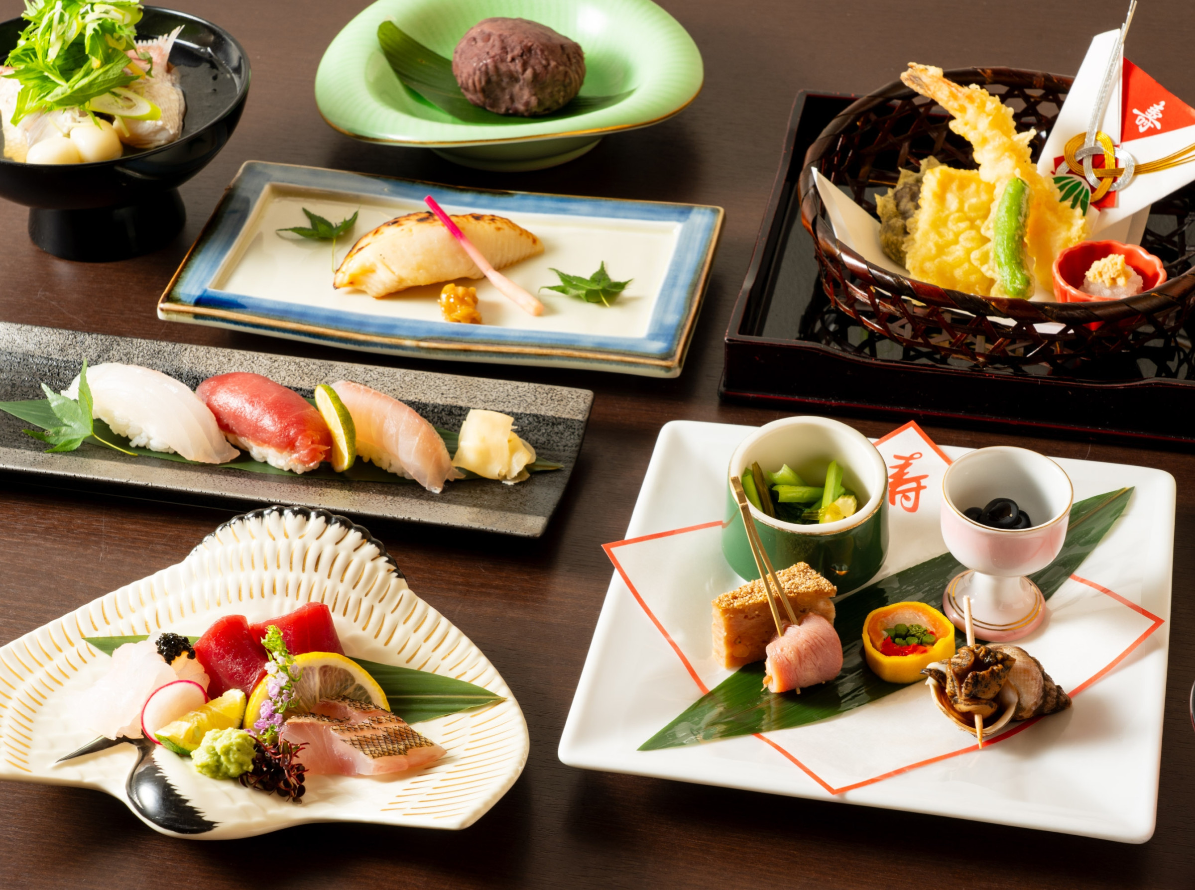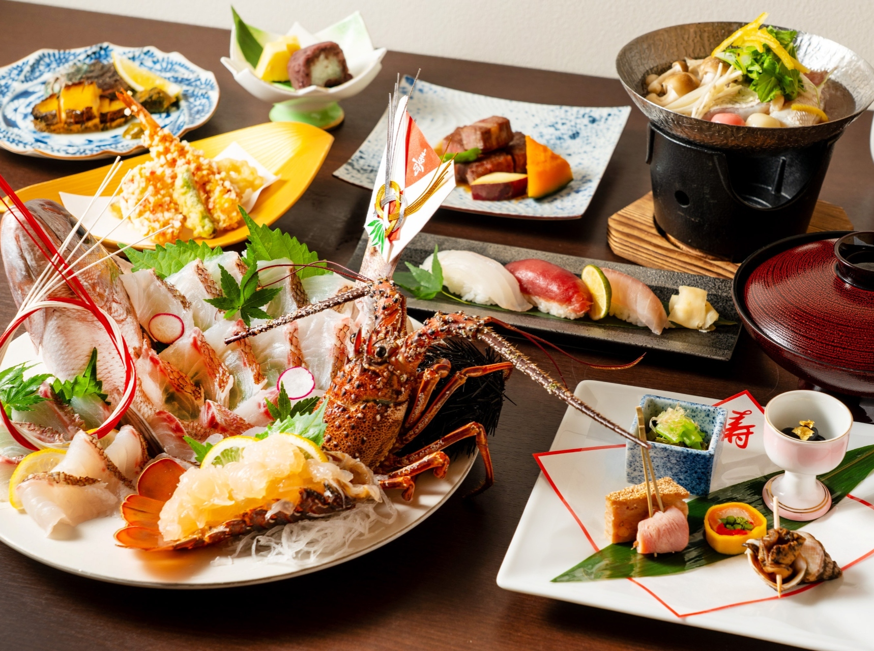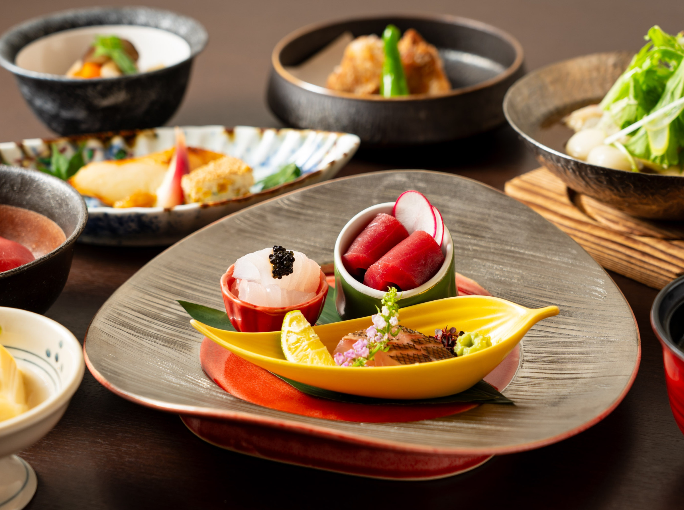 旬の海鮮を贅沢に用いた会席料理、そして様々な個室・半個室は会食やご接待はもちろん、海外ゲストのおもてなしにおいても落ち着いたご歓談の空間として高い評価をいただいております。