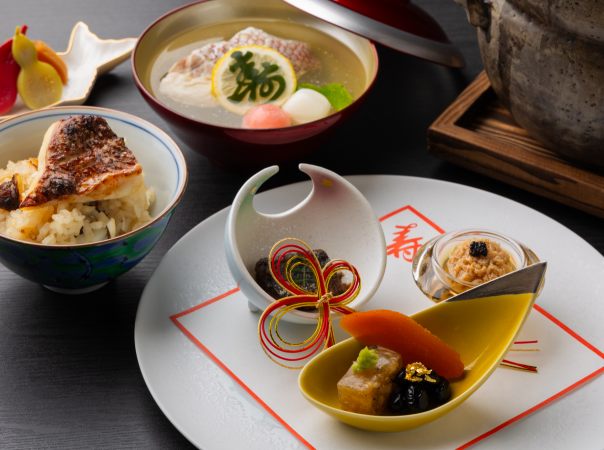 【先 付】揚げ胡麻豆富 や 祝い前菜盛り合わせ