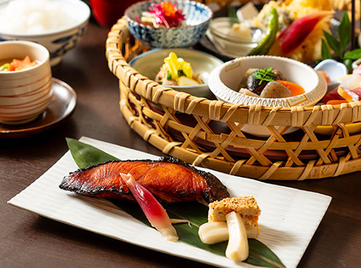 一番人気の華かご御膳に自慢の銀鱈味醂焼きをプラスした贅沢なランチです。
